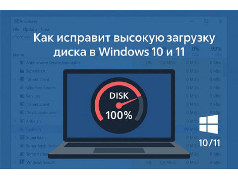 Высокая загрузка диска — одна из самых частых причин медленной работы Windows 10 и 11. Пользователи замечают, что даже при минимальной активности системы диск загружен на 100%, а программы открываются с задержкой. В этой статье мы разберём, из-за чего это происходит, как выявить источник нагрузки и какие действия помогут восстановить нормальную производительность.